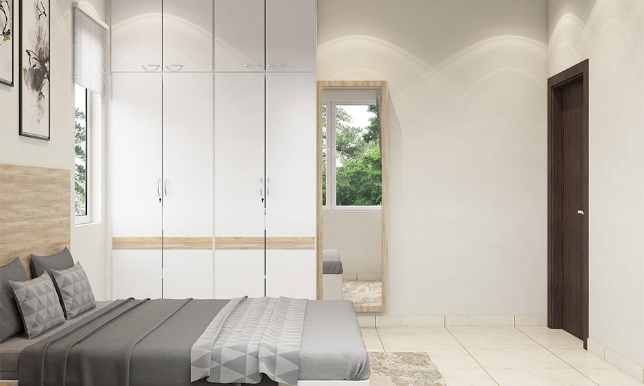 Where the bedroom layout provides sufficient door-swing clearance — typically in larger rooms in Sector 44, Sector 50, Greater Noida villas, and independent builder floors — hinged wardrobes open the full interior width in a single gesture. Both sides of the wardrobe are simultaneously visible and accessible without panels partially blocking each section.